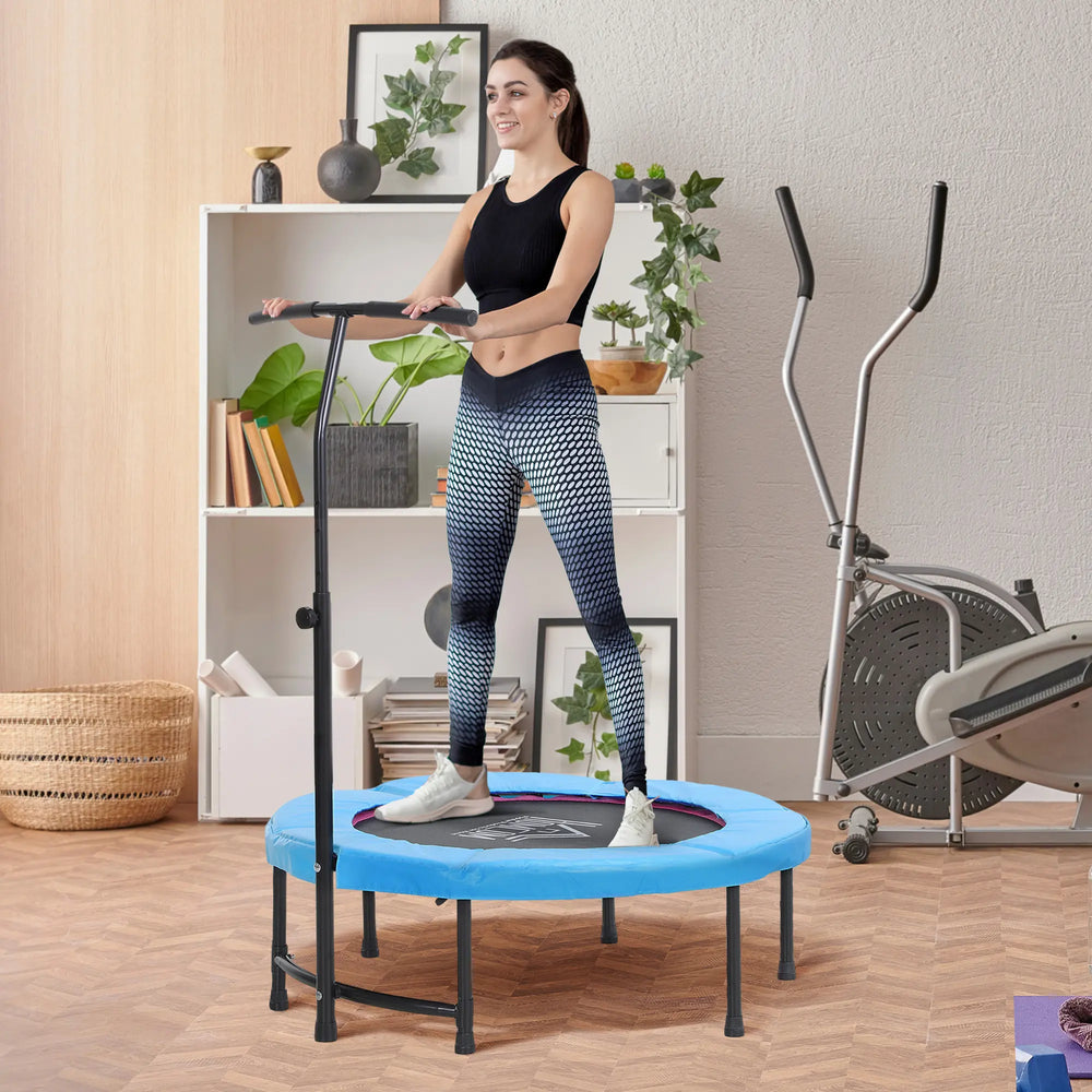HOMCOM 40" Fitness Trampoline with Adjustable Handle, Rebounder Trampoline, Mini Jumper for Indoor Exercise Workout, Blue
