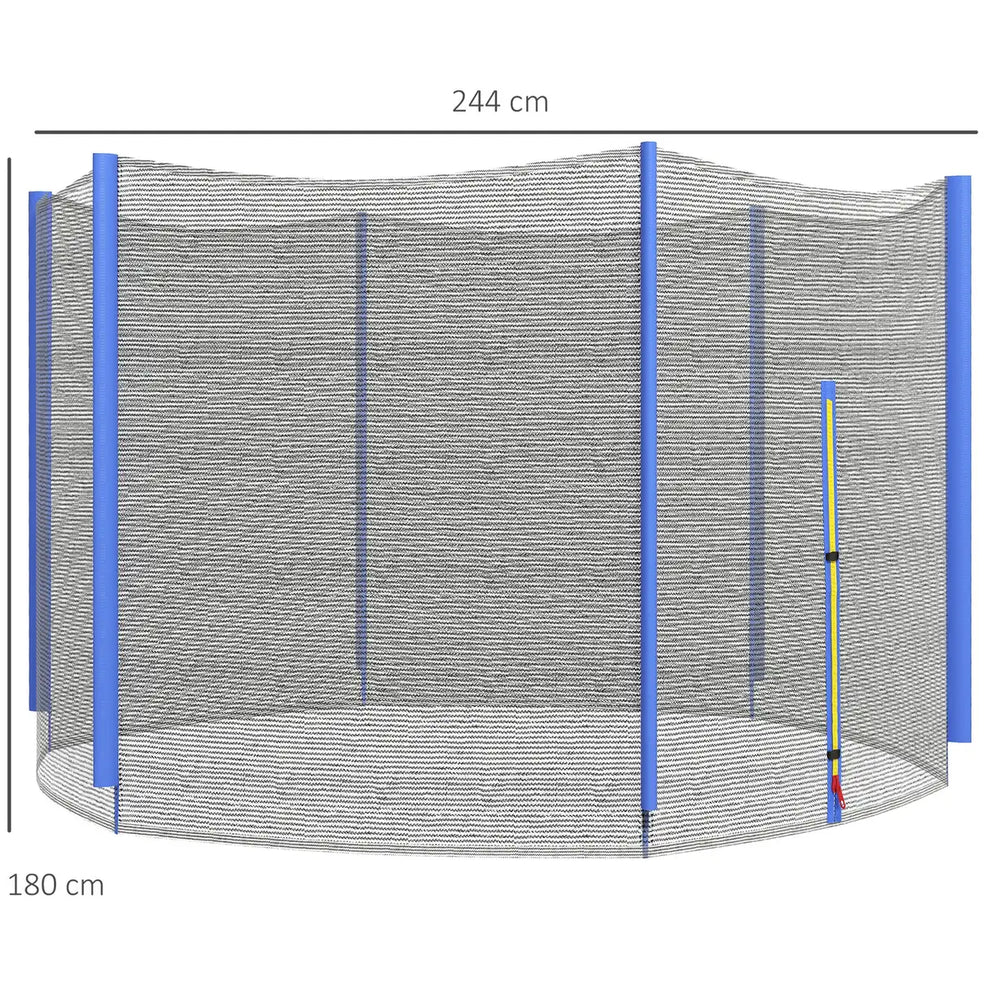 Keep your safe and protected with the SPORTNOW 244cm trampoline enclosure replacement. It fits 244cm/8ft trampolines with six straight poles to replace your old or ripped safety net. Our trampoline safety enclosure is made from tough, weatherproof polyethylene, allowing indoor and outdoor use. The entrance of the net includes a sealable zipped system to maximise protection. An important safety accessory, it creates a trampoline you can trust (Enclosure net ONLY, no poles included).