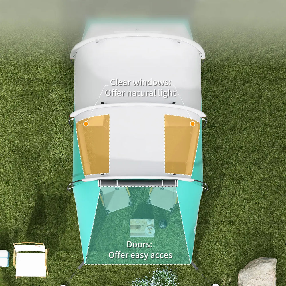 Camping doesn't have to be cramped - look to this Outsunny tunnel tent. The two-room design, formed of a bedroom and front porch: the bedroom comfortably holds three people with space for keeping belongings safe, with a sewn-in groundsheet to keep you dry. The front porch offers extra holding space and for you to chill. Doors to enter and leave easily, finished with windows to allow natural light inside.