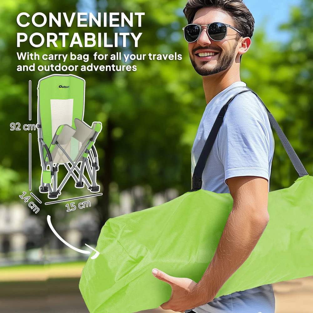 Outsunny Set of 2 Folding Beach Chair, Low Camping Chair with Mesh Back, Carry Bag and Cup Holder for Garden Outdoor Picnic Festival Travel, Green