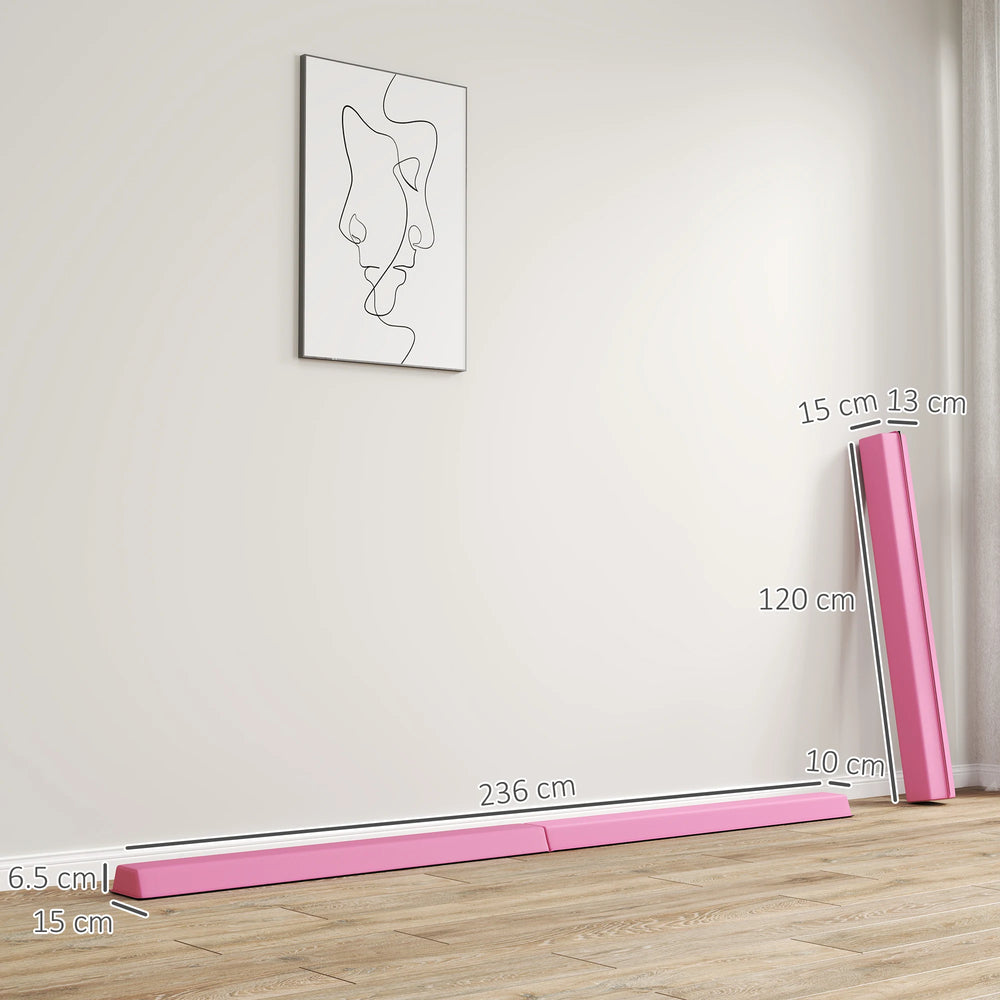 SPORTNOW 7.7ft Folding Gymnastics Beam, Floor Balance Beam for Kids with Anti-Slip Base, Gymnastics Equipment for Home, Pink