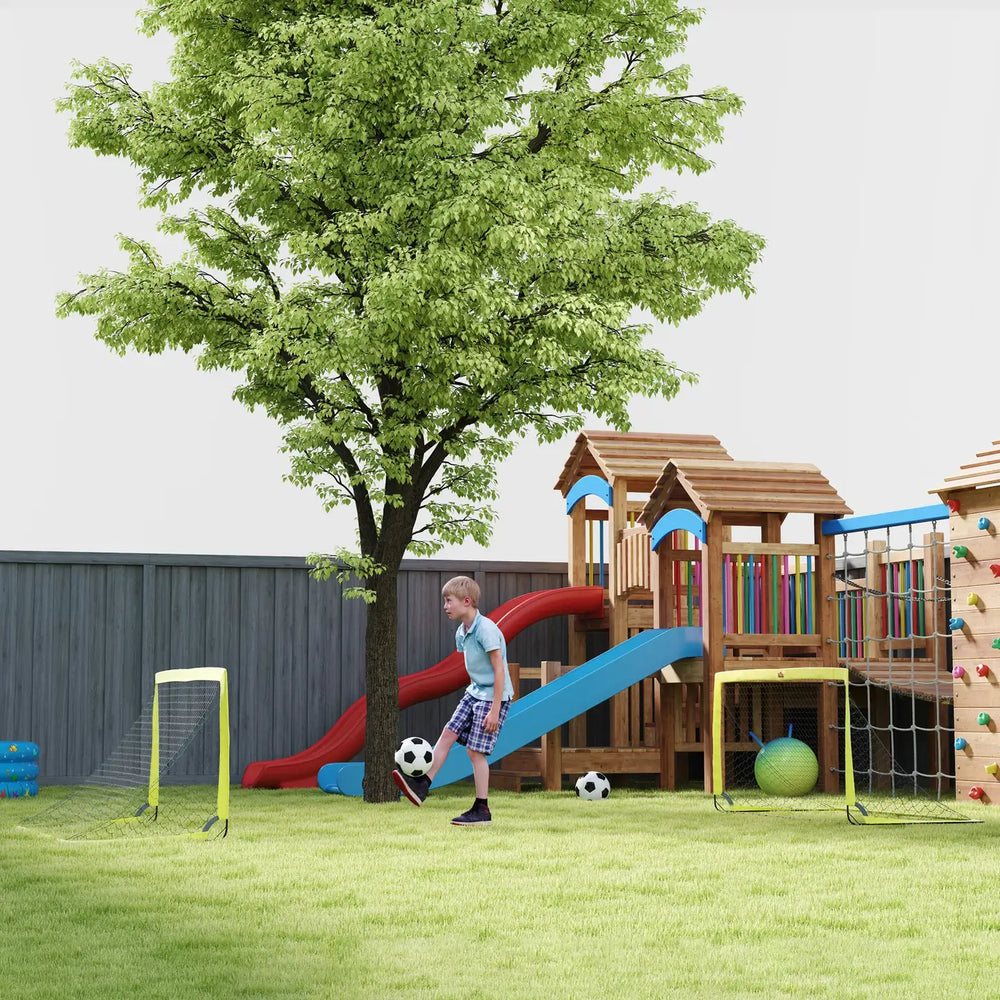Whether training or just love a fun kickabout, these HOMCOM football nets are great for all ages. Compact and lightweight, they come with a carry bag so you can set up anywhere. Made with strong PE material and a powder-coated steel frame, they're ready for outdoor play, rain or shine. Enjoy the beautiful game, improve your skills, have fun and make unforgettable memories.