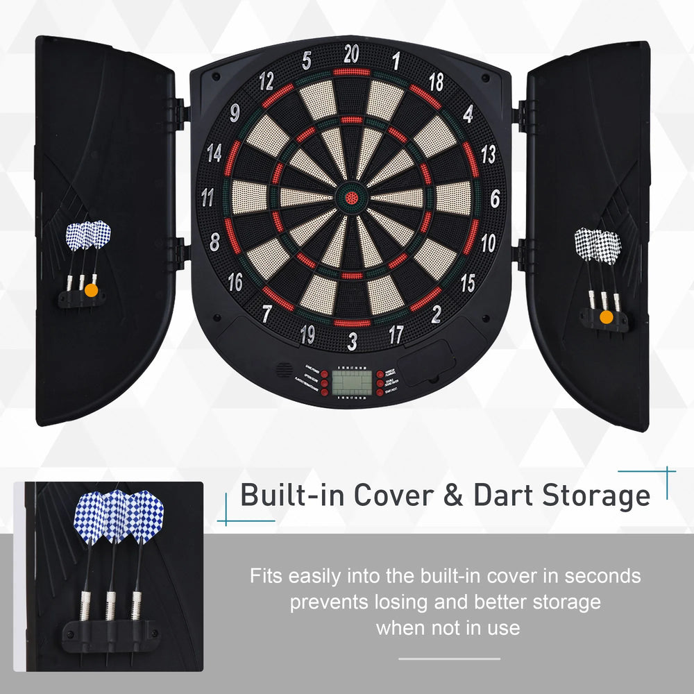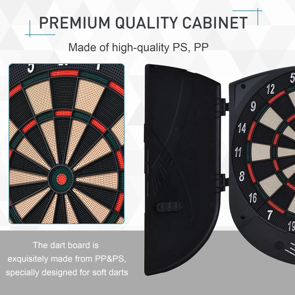 HOMCOM Electronic Dartboard Set 26 Games and 185 Variations with 6 Darts and Cabinet to Stroage Multi-Game Option Ready-to-Play