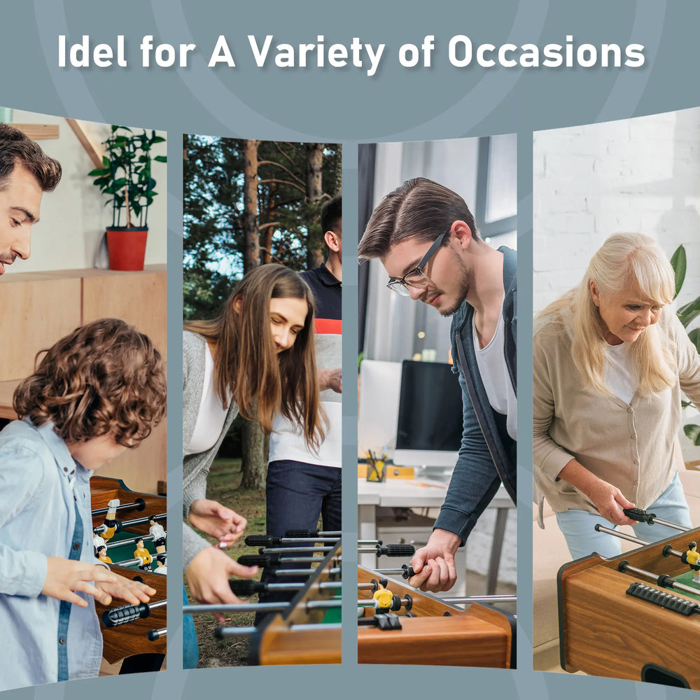 This HOMCOM table football game is the optimal option for a tabletop foosball table set thats suitable for the whole family, ideal for all kinds of groups,being a fantastic activity for interaction between parents and children, friends, or colleagues. It adapts perfectly to the home, bars, parties, school, or even the office, thanks to its compact and lightweight portable design. Its these types of games that help promote the ability to react quickly, improve hand-eye coordination, enhance agility and psychomotor skills, in addition to being beneficial for the development of the right brain that is rarely used in our daily activities. Try this tabletop foosball table from HOMCOM and have a great time with your friends and family anytime you play.