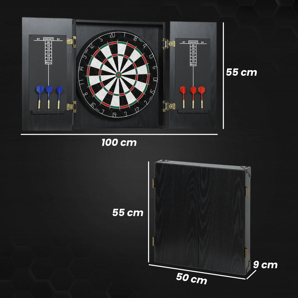 Enhance your game nights with the SPORTNOW dartboard. Housed in a protective cabinet with two side doors, you won't have to worry about stray darts damaging your walls. Keep track of scores easily with the scoreboard on each door and find out who the best dart player is. Crafted from tightly packed sisal fibres, it's great for daily play. When finished, just close the cabinet doors to prevent dust accumulation, ensuring it blends perfectly with your decor.