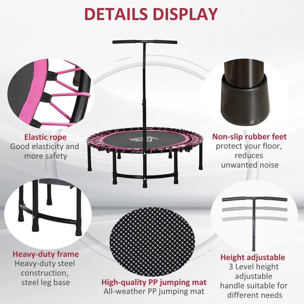 HOMCOM Mini Round Steel Frame Trampoline w/ Adjustable Handle, Pink