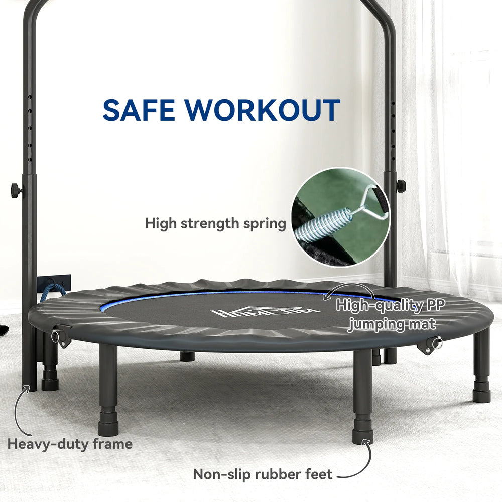 HOMCOM 48" Foldable Mini Fitness Trampoline, with Adjustable Foam Handle, Blue