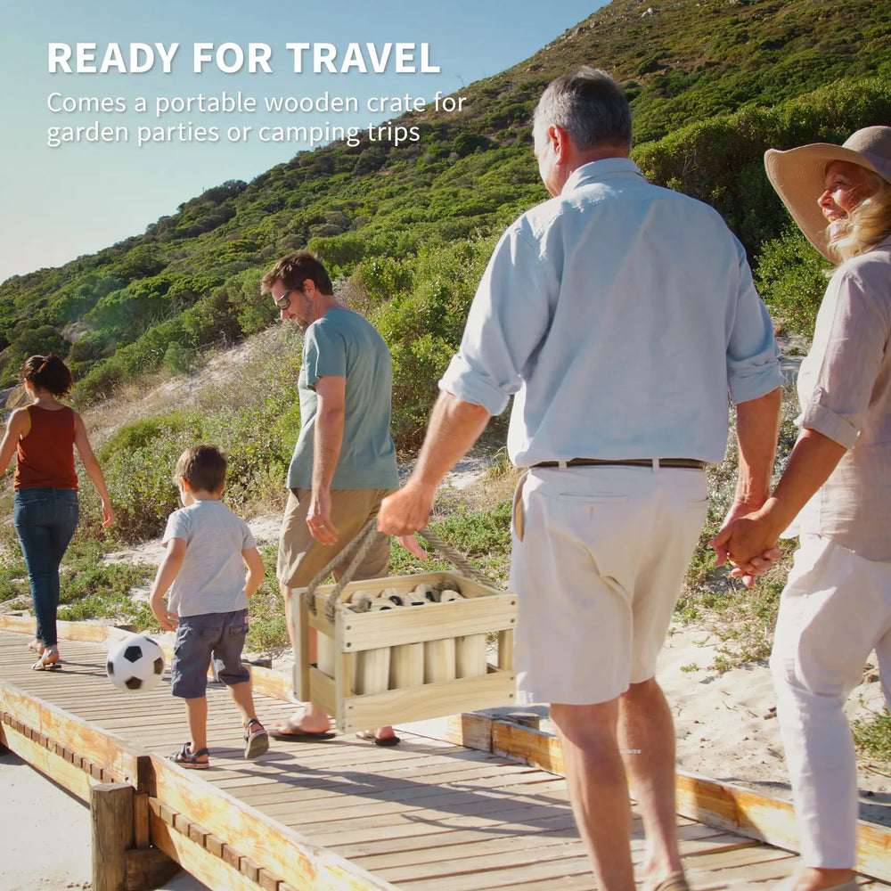 - Robust pinewood build: Each piece in this skittles game is carefully crafted from robust pine wood, offering a smooth touch and lasting durability. Great for outdoor play, the natural wood construction adds charm and ensures long-term use.