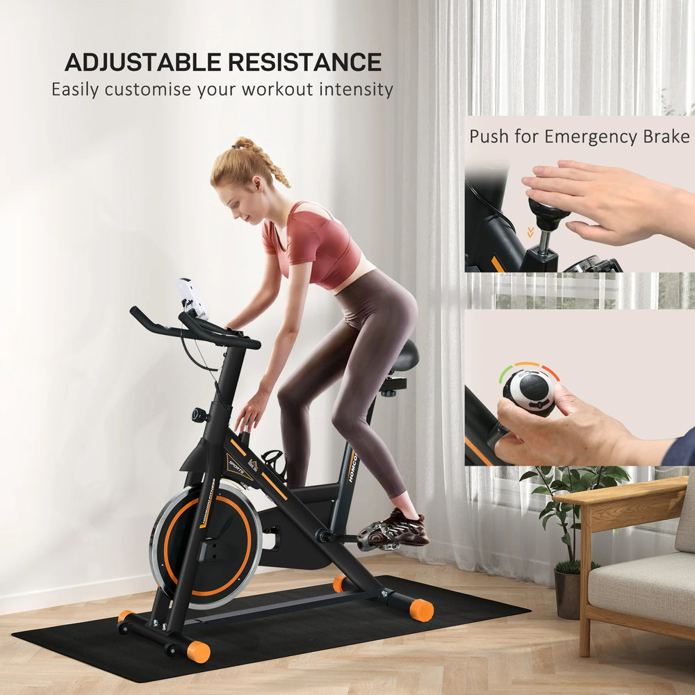 HOMCOM Exercise Bike, Indoor Cycling, with LCD Display, Heart Rate, Sensor - Black and Orange