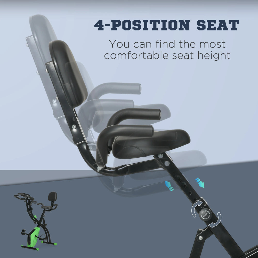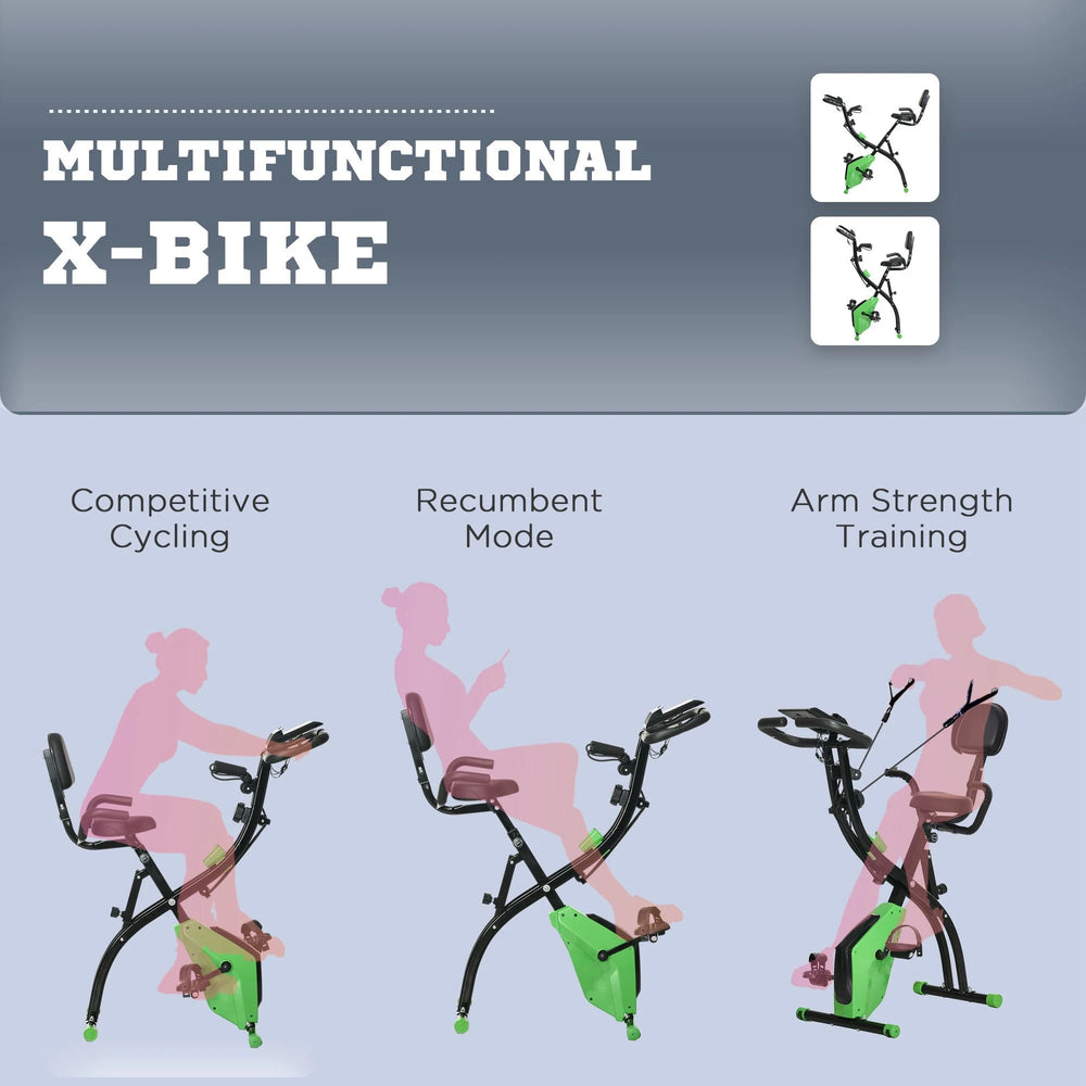 HOMCOM 2-in-1 Folding Exercise Bike with 8-Level Magnetic Resistance, Arm Resistance Band, Pulse Sensor, Green
