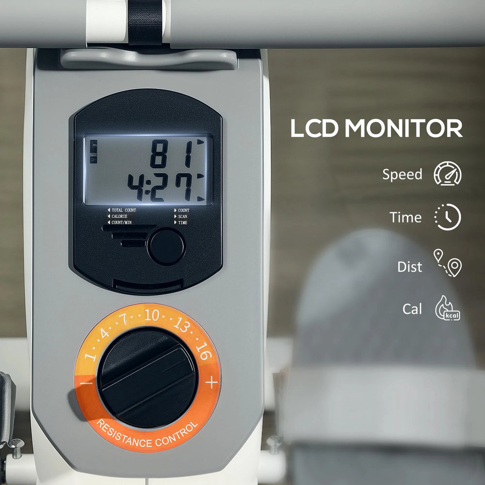SPORTNOW Rowing Machine, 16-Level Magnetic Rower Machine with LCD Monitor and Phone Holder, White