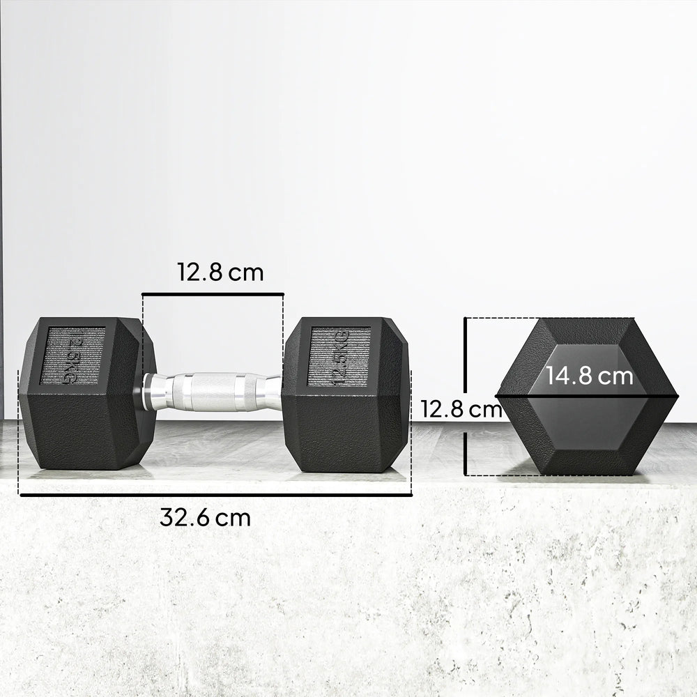 HOMCOM 2x12.5KG Rubber Hex Dumbbell Portable Hand Weights Dumbbell Home Gym