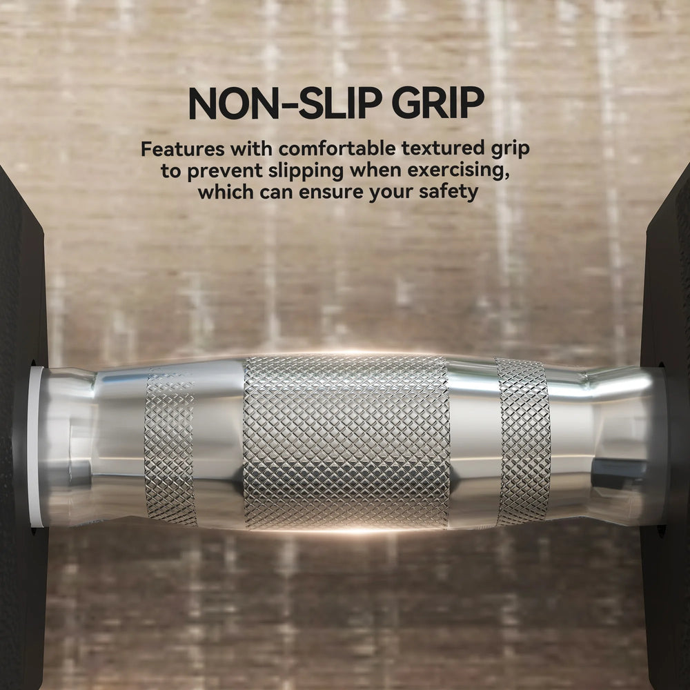 - Steel core: Tough and strong, with knurl indents for grip - prevents weights slipping and causing injury.