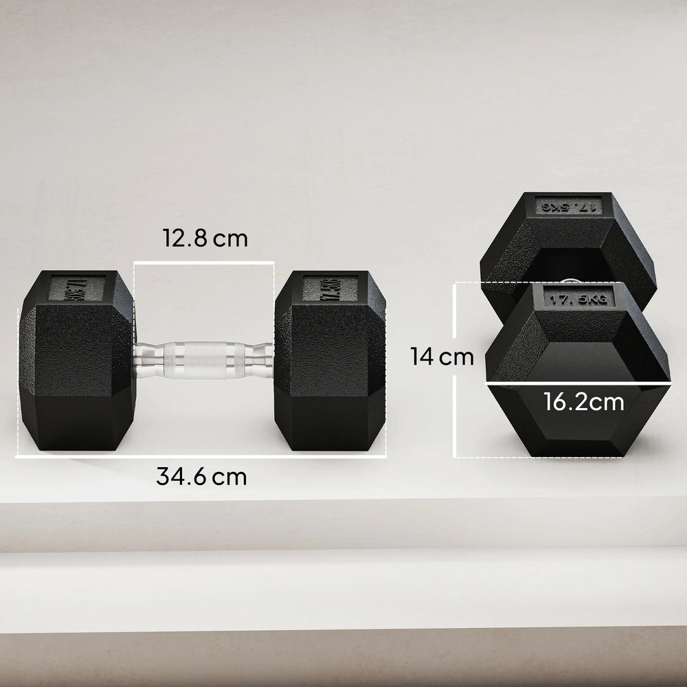 HOMCOM 2x17.5KG Rubber Hex Dumbbell Portable Hand Weights Dumbbell Home Gym