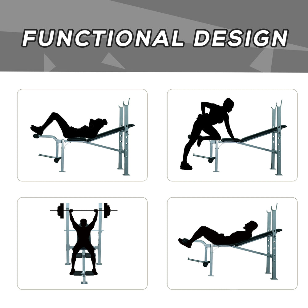 HOMCOM 4-Levels Adjustable Weight Bench Fitness Equipment with Barbell Rack-Black