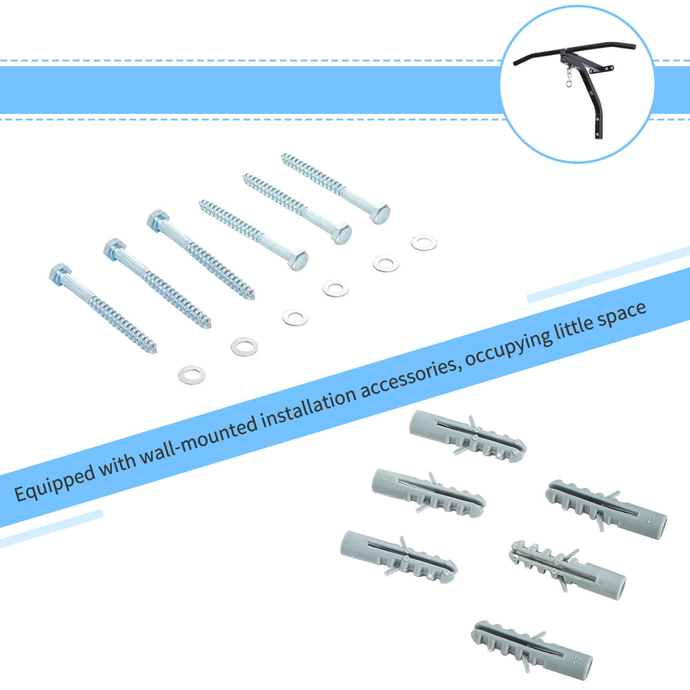 This punch bag bracket with a chin-up bar is an effective way to work most of the upper body muscles and it is an ideal trainer for shaping your upper body, chest, back, and arms. Perfect for the home gym or health club, this hanger can be used for boxing, kickboxing, or MMA bags. The wall mount comes with all of the necessary hardware. Constructed of heavy-duty steel, our wall hanger is durable and safe for a lifetime.