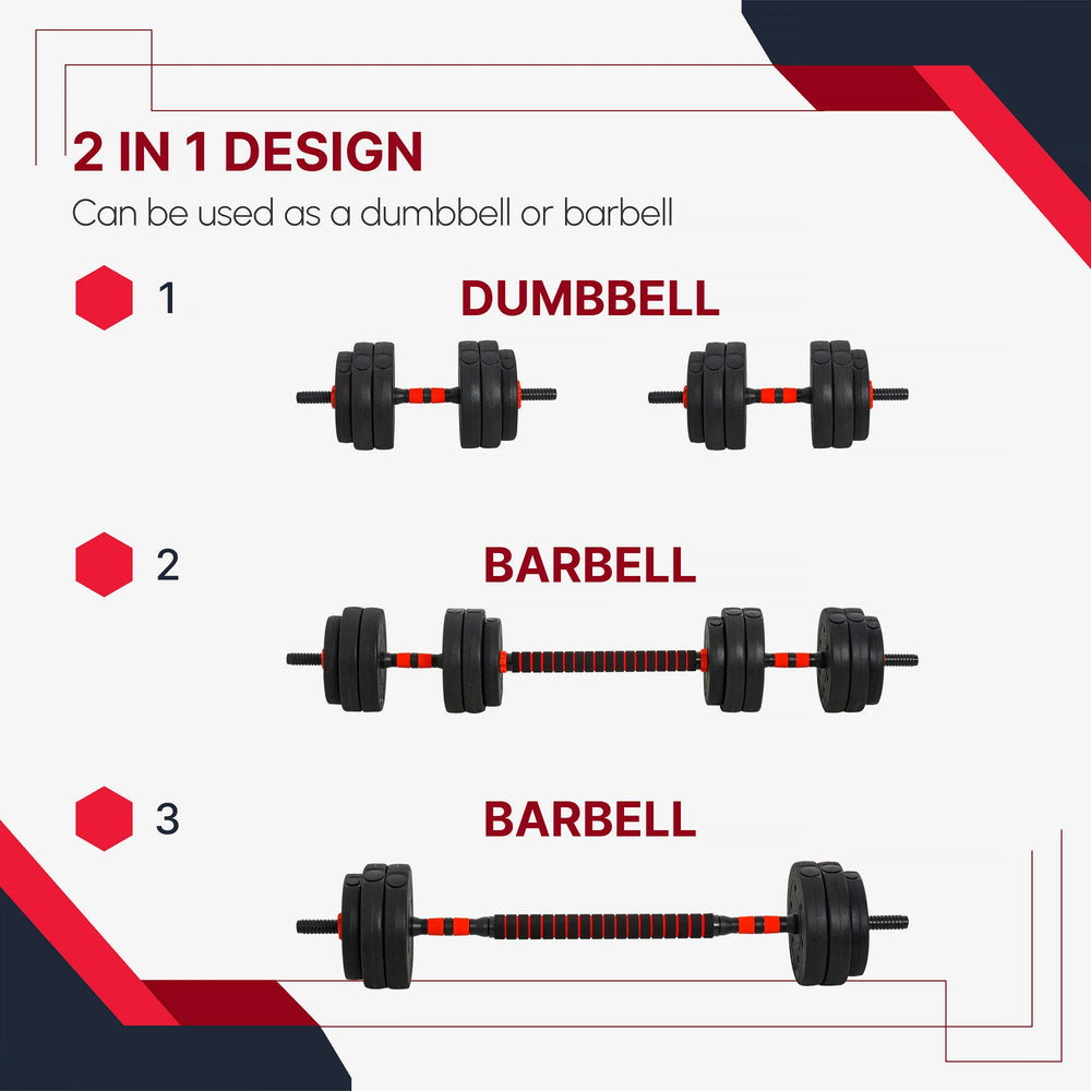 HOMCOM 25kg 2 IN 1 Adjustable Dumbbells Weight Set, Dumbbell Hand Weight Barbell for Body Fitness, Lifting Training for Home, Office, Gym, Black