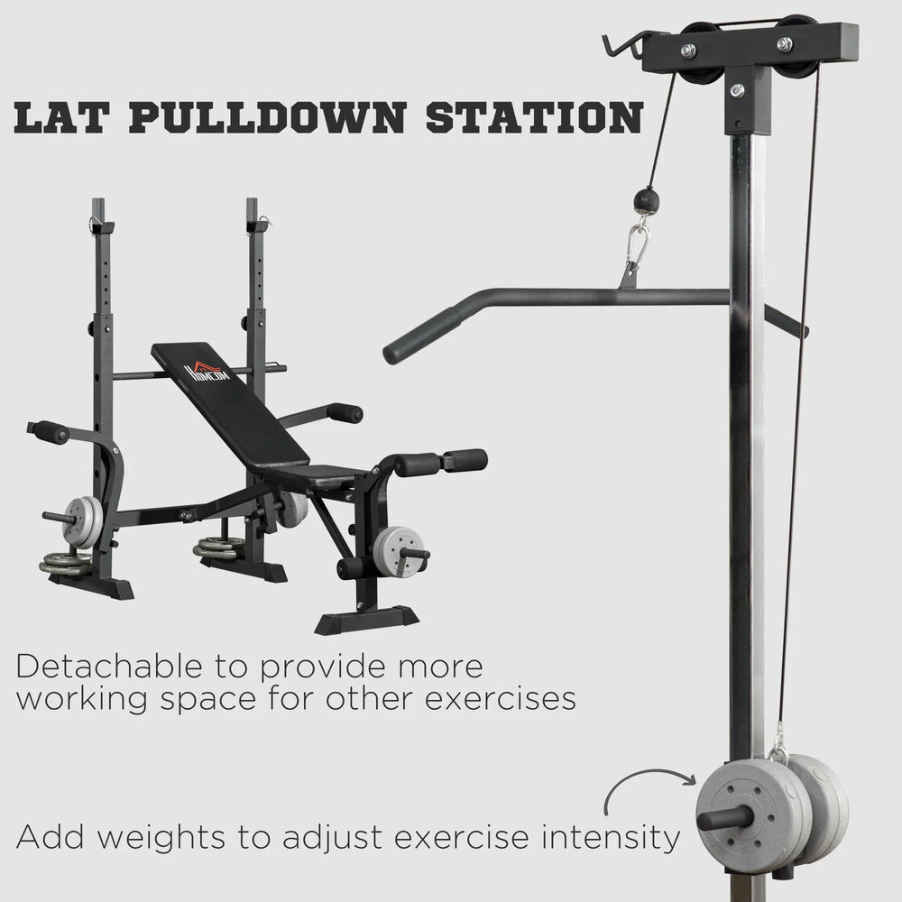 HOMCOM Adjustable Weight Bench with Pulley System, Incline Bench Press Set with Squat Rack, Leg Developer, Butterfly and Weight Storage, for Home Gym Full Body Workout