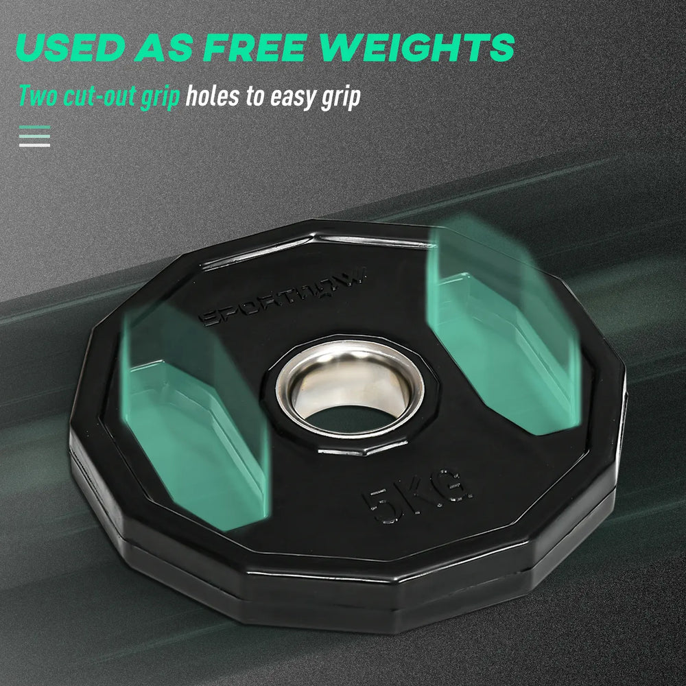 - Ergonomic design: Each 5kg weight plate includes dual cut-out holes to ensure a secure and comfortable grip during bar-free weight exercises and easy storage.