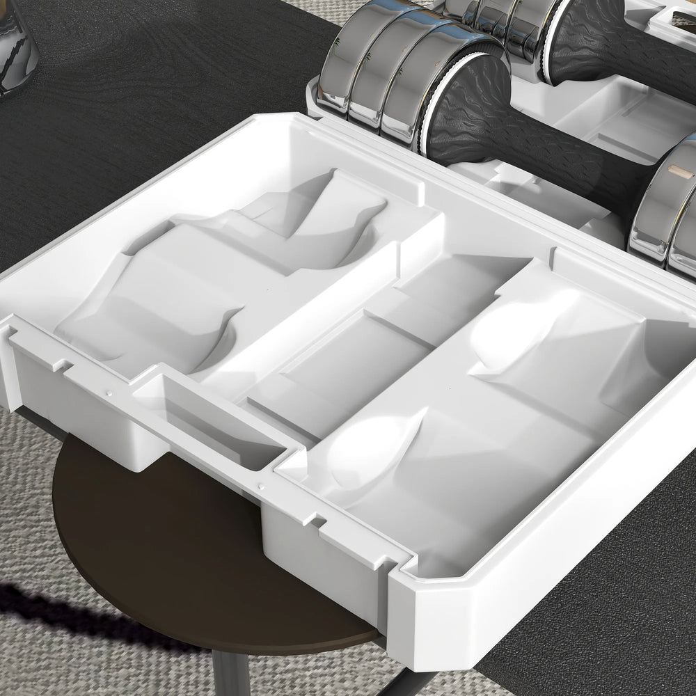 - Single dumbbell dimensions: 10 x 30Lcm. Handle: 3 x 13Lcm. Storage box: 11.5H x 35.6L x 25.3Wcm