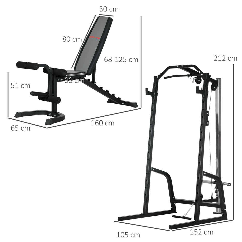 SPORTNOW Smith Machine & Cable Pulley System with Adjustable Weight Bench, Multifunction Home Gym Power Rack with Lat Pull Down System, Barbell Rack for Full Body Training, Black