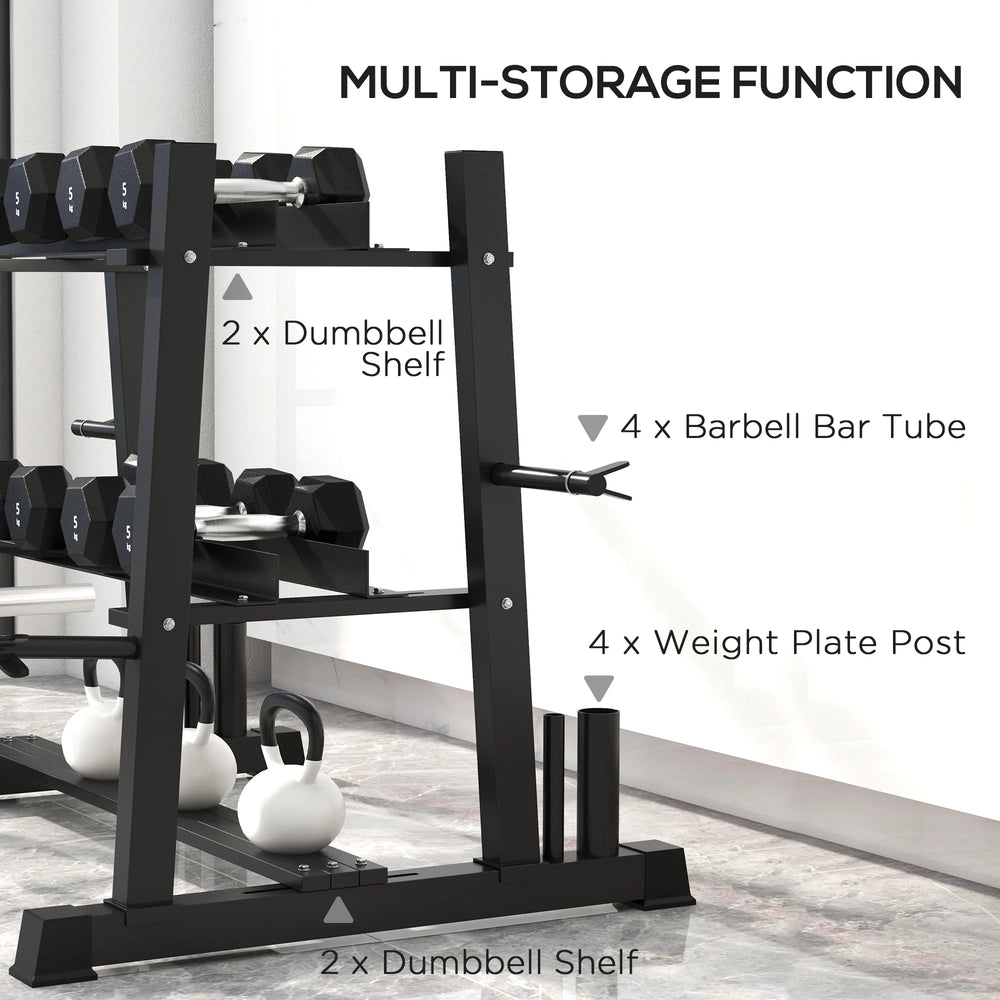 SPORTNOW 3-Tier Dumbbell Rack, Versatile Weight Rack with 4 Weight Rods for Dumbbells, Kettlebells and Plates (Rack Only)