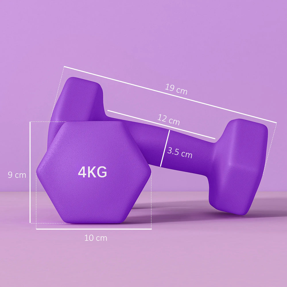 SPORTNOW 2 x 4kg Hexagonal Dumbbells Weights Set with Non-Slip Grip for Home Gym Workout, Purple