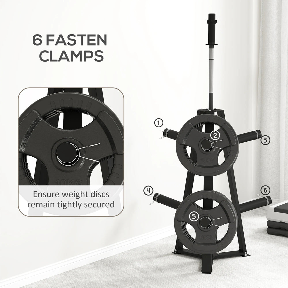 SPORTNOW Weight Tree Weight Rack for 5cm Weight Plates and Barbell Bar with 6 Fasten Clamps, 300kg Capacity