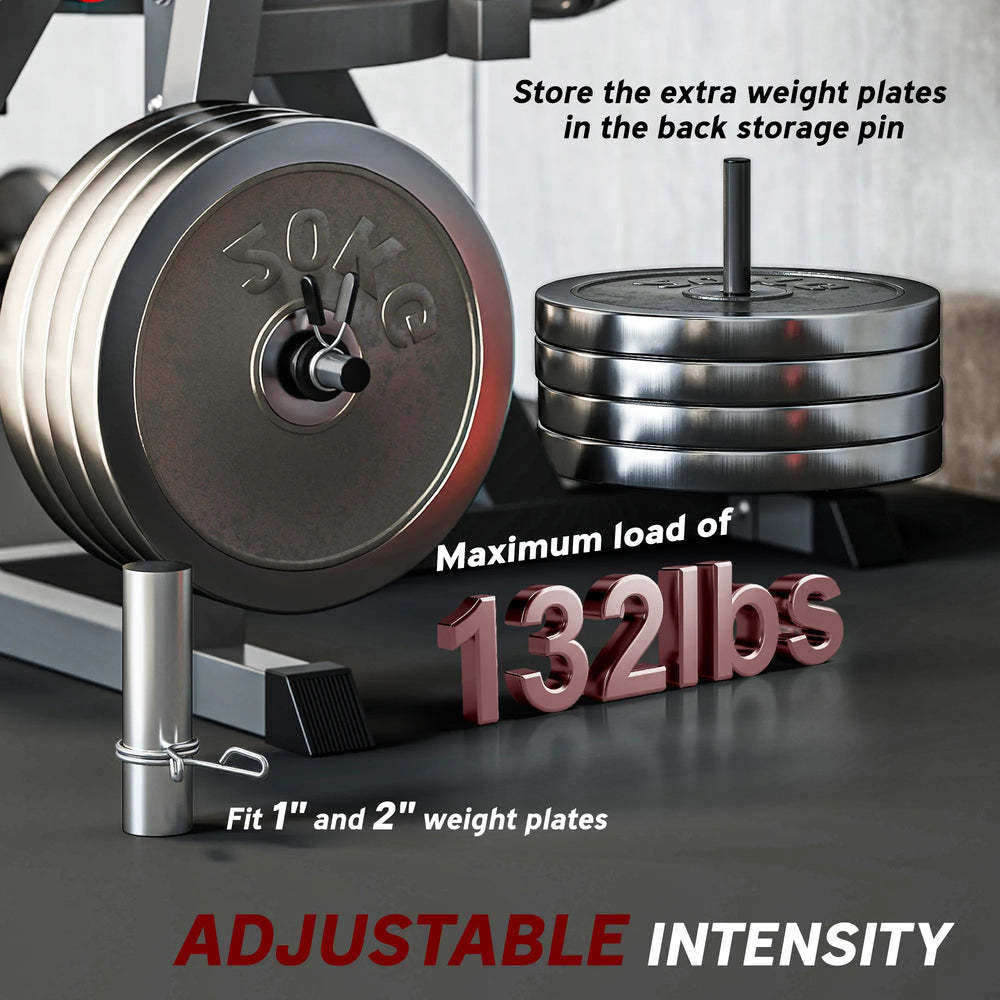 - Accommodates 2.5 cm and 5 cm weight plates for tailored intensity, max load 60 kg