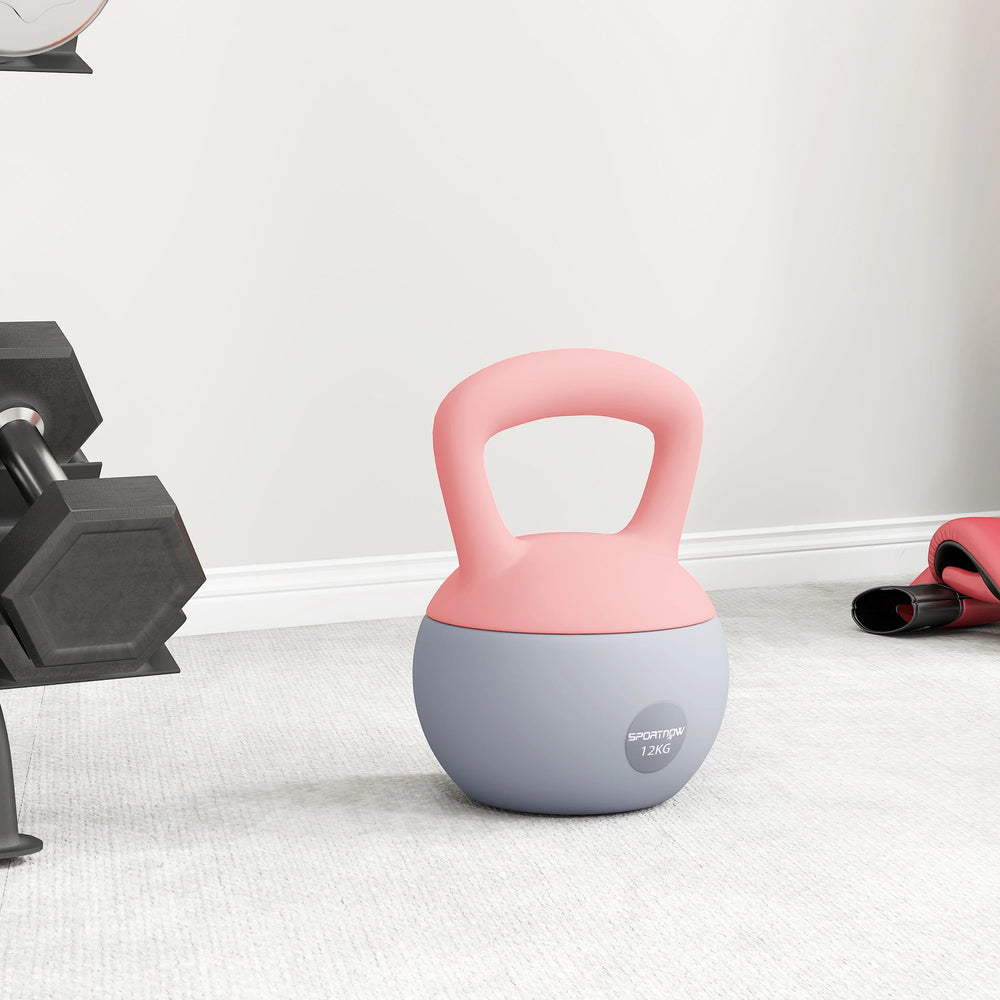 SPORTNOW 12KG Soft Kettlebell, Kettlebell with Non-Slip Handle for Home Gym, Weight Lifting, Strength Training, Pink/Grey