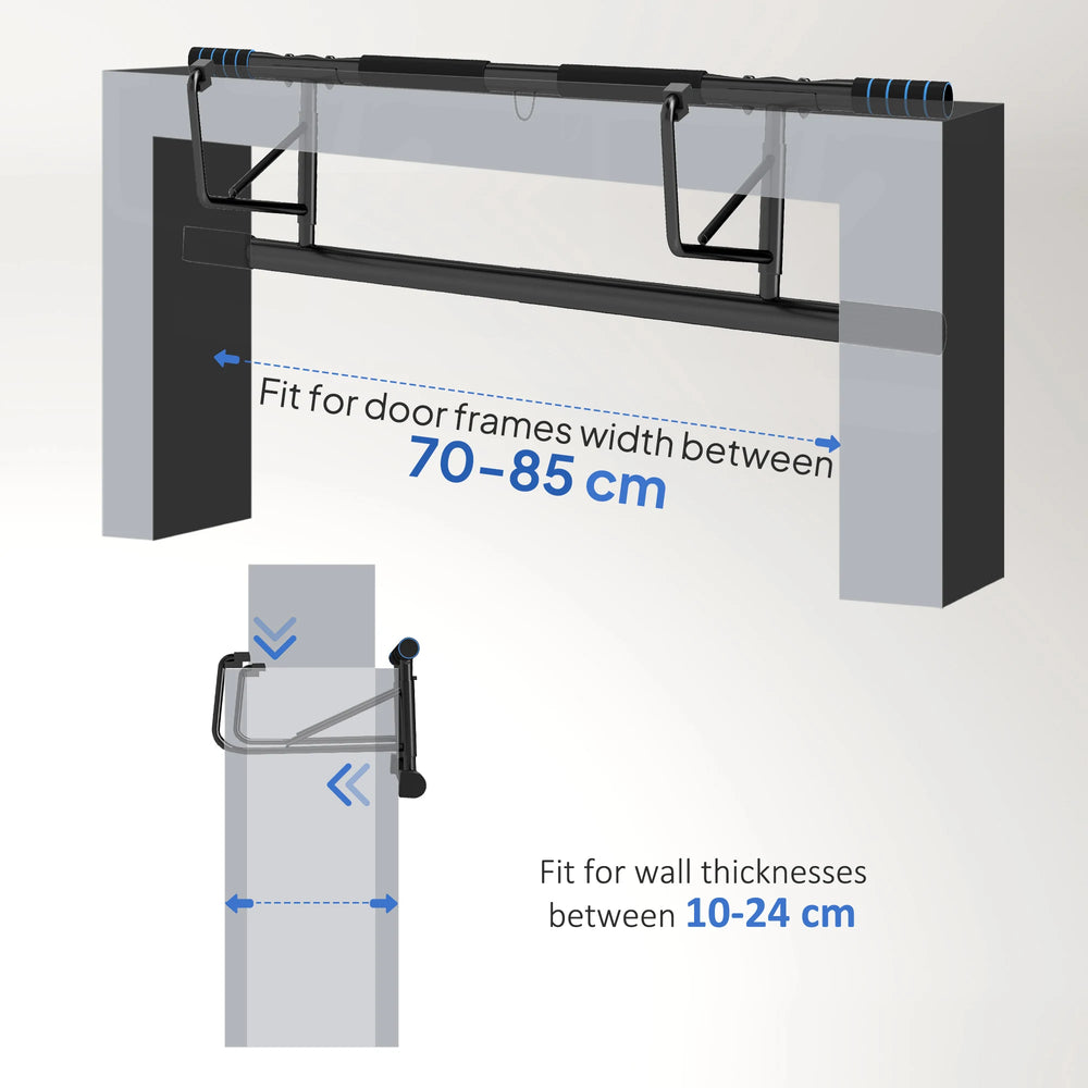 Transform your doorway into a mini gym with the SPORTNOW pull-up bar! This installation-free design easily hangs on door frames (80-100 cm wide) and walls (10-24 cm thick), allowing you to perform pull-ups with ease. Use the included resistance bands to push your limits even further. Enjoy a comfortable grip from the EVA foam handles as you pull yourself up. It's a fantastic full-body workout all you need is a doorway to get stronger and fitter.