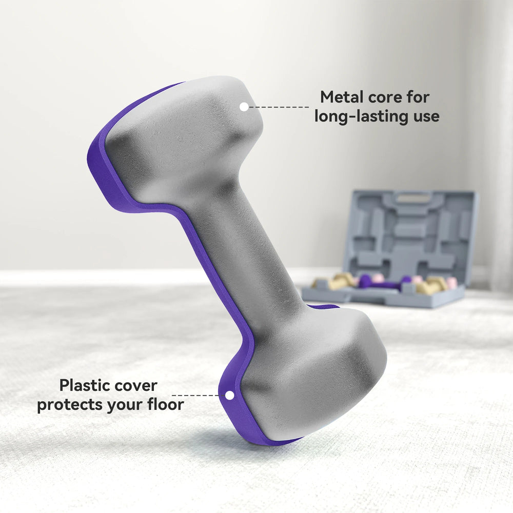 - Complete weight set: This fitness set includes six colour-coded dumbbells (2 x 1 kg, 2 x 2 kg, 2 x 3 kg), great for enhancing your workout routine at home.
