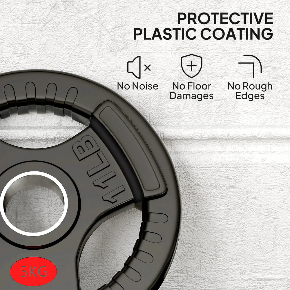 - Triple grip versatility: Designed with three ergonomic hand grip holes, the two 5 kg plates are easy to pick up from the floor and just as easy to use - great for squats, lunges, Russian twists, or any weight training without a barbell.