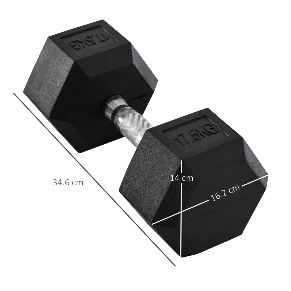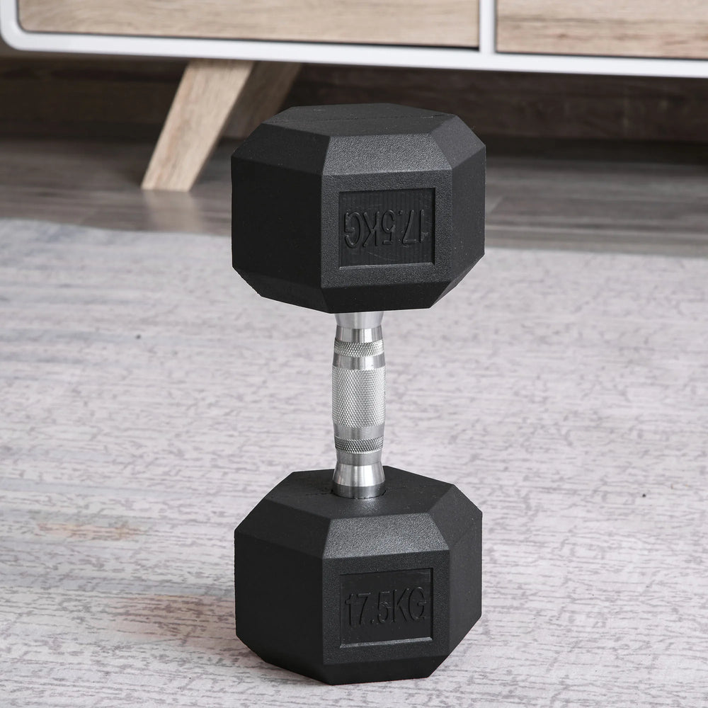 HOMCOM 2x17.5kg Rubber Hex Dumbbell Portable Hand Weights Dumbbell Home Gym Workout Fitness Hand Dumbbell