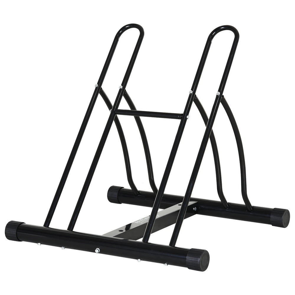 HOMCOM 2 Bike Floor Parking Stand Rack Indoor Outdoor Ground Reversible - Black