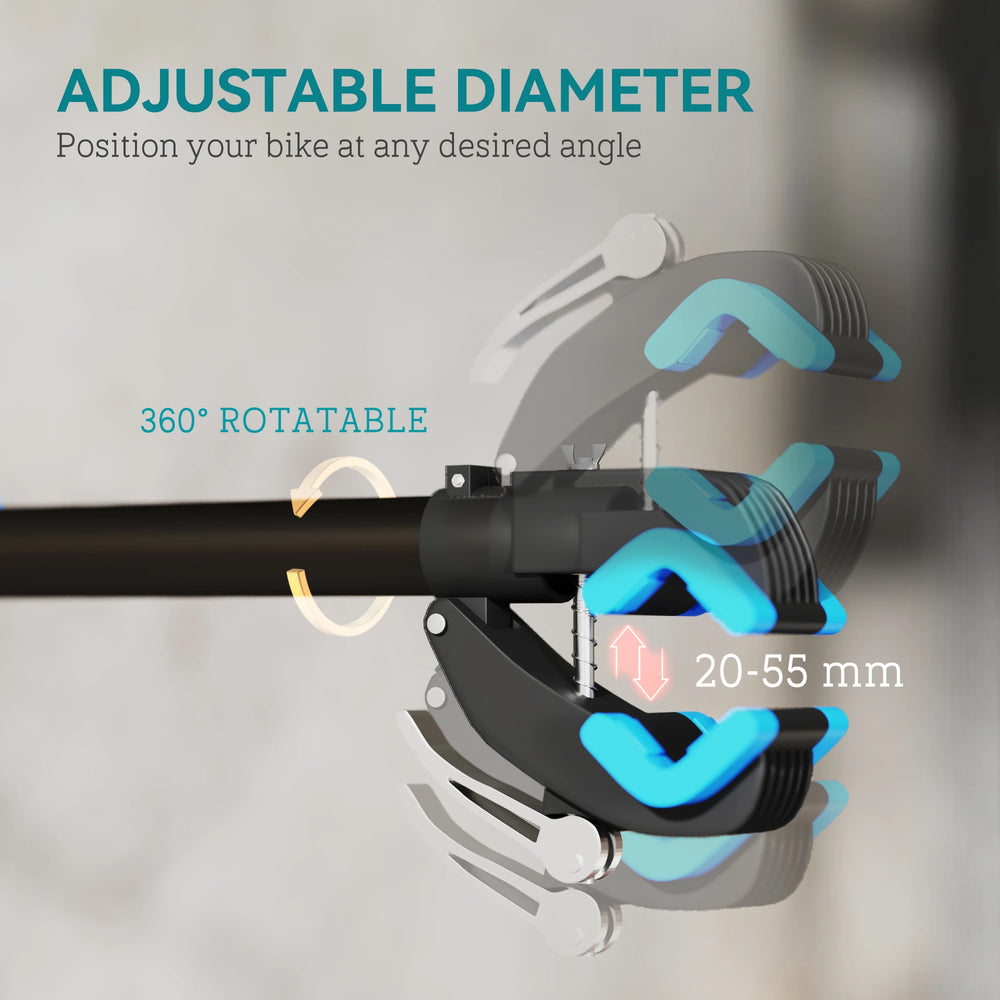 Effortless bike repairs are achievable with the HOMCOM bike work stand. Adjustable from 47-64cm, it suits most bikes and supports up to 25kg. The 360 rotatable clamp prevents frame scratches, enabling you to tackle repairs from any angle with ease. Great for various workspaces, this versatile stand can be mounted on walls, benches or poles. Get ready to take on all your bike maintenance tasks efficiently and confidently!