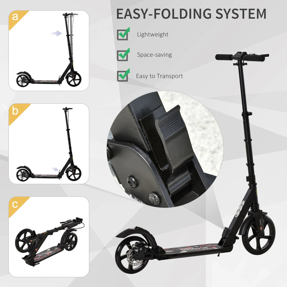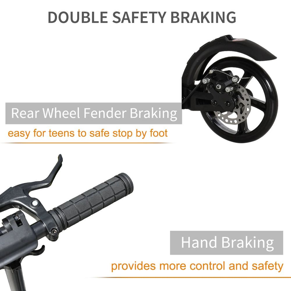 HOMCOM Kick Scooter, Folding 2 Wheel Scooter for 14+ Teens Adults, with Dual Brake System, Dual Suspension, 230mm Big Wheels, 3 Adjustable Handlebar, up to 100KG, Black
