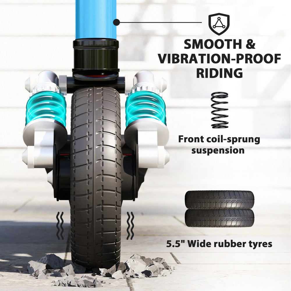 - Smooth and comfortable: Front coil-spring suspension and rubber tyres keep rides smooth. Its soft start avoids sudden jolts, while double brakes provide a safe and swift stop. Designed for children only, not suitable for users over 50 kg.