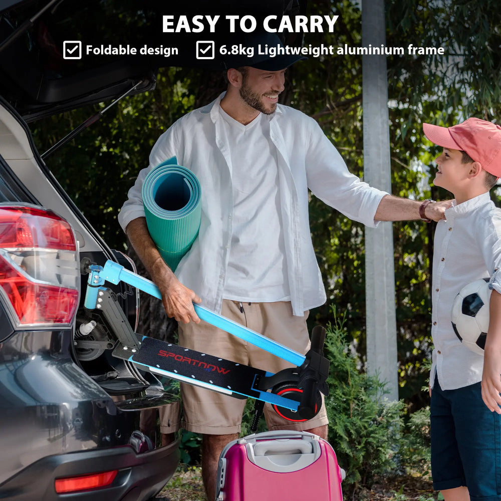 Scootering just got cooler with the SPORTNOW e-scooter! Great for ages 614 years, it reaches up to 14km/h and covers 6km on a three-hour charge. The soft start feature prevents sudden jolts, while dual brakes offer safe stops. Lightweight and foldable with an aluminium frame, it's easy to carry and store. An LED display shows speed and battery level, while the vibrant bottom light bar adds fun and visibility. Ready to ride?