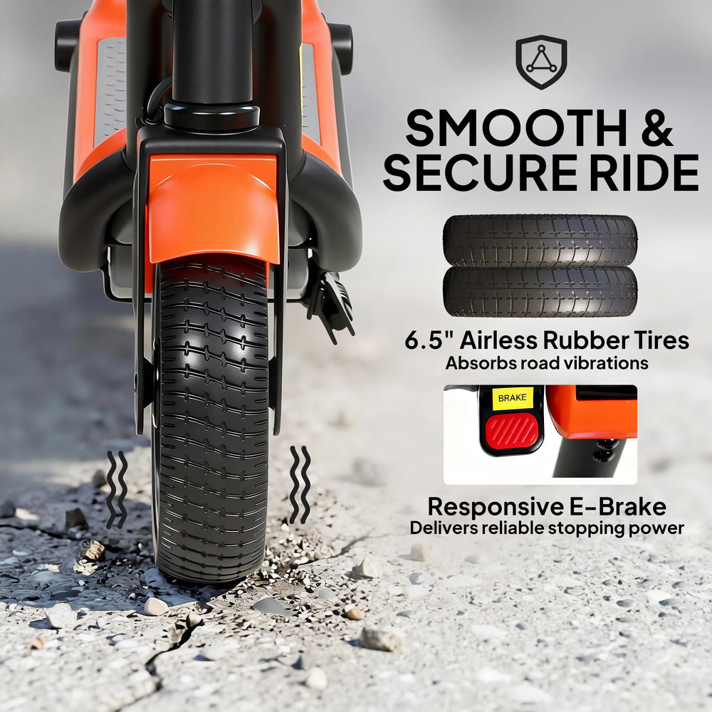 - Comfortable, confident rides: This kids scooter features 6.5" airless rubber tyres that absorb vibrations for a smoother journey, while the responsive handbrake brings it to a quick and controlled stop