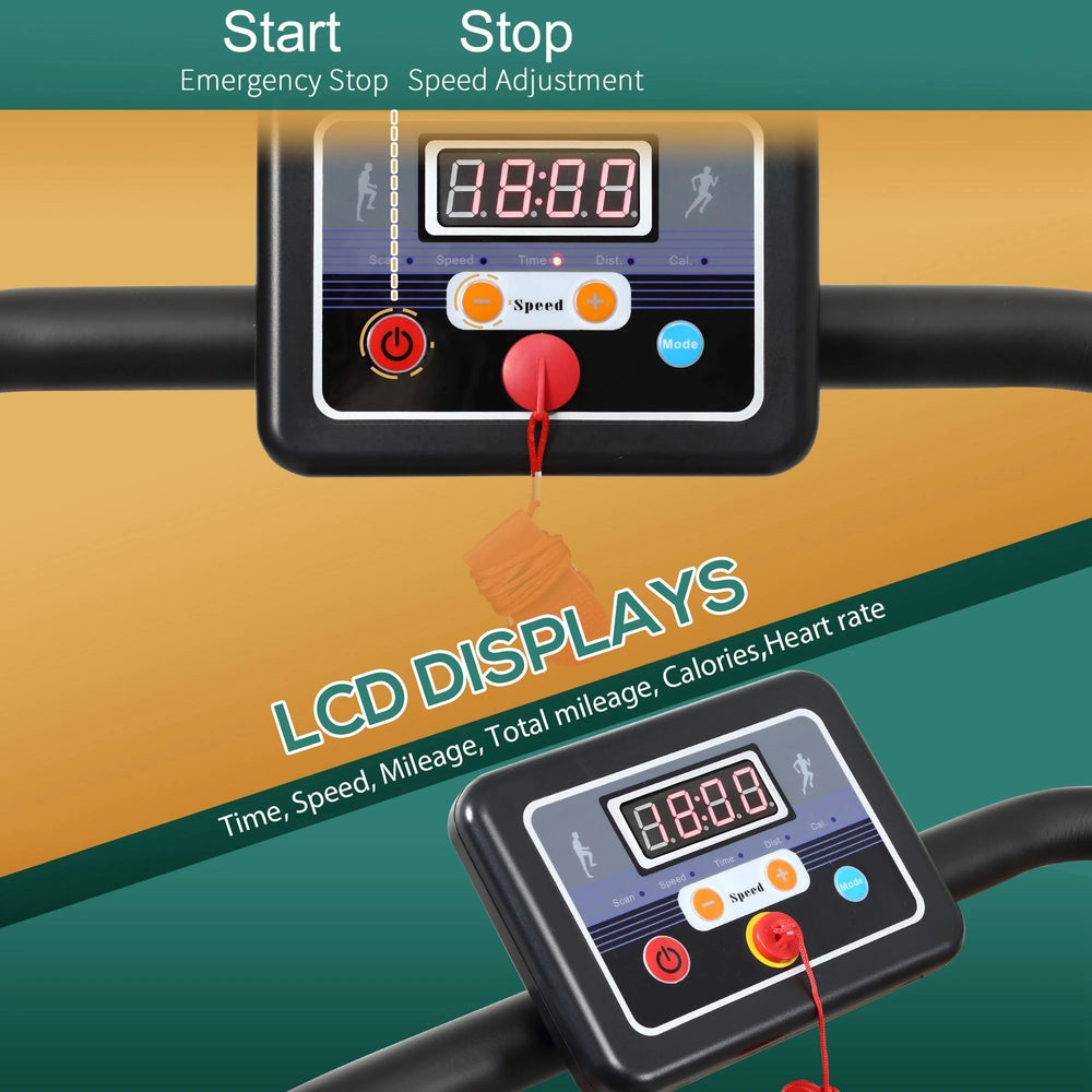 - 500W Electric-powered treadmill: This 1.25HP electric treadmill goes up to 10 km/h suitable for beginners and advanced runners.