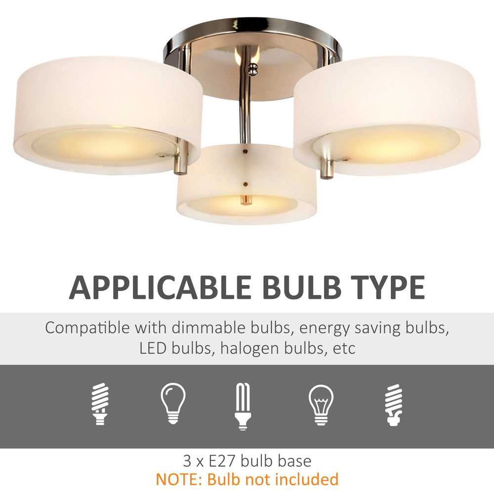 - BULB REQUIREMENTS: Requires 3 x E27 Bulbs (not supplied). The ceiling lamp is compatible with incandescent, LED bulbs, halogen.