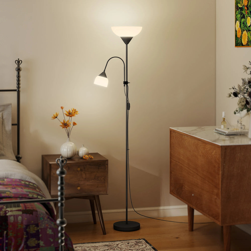 - Duo light design: Classic mother-child setup with E27 main uplighter and E14 gooseneck reading light (bulbs not included). Supports max 40W (E27) and 25W (E14), compatible with E27-A60 and E14-G45 bulbs for flexible, layered lighting.