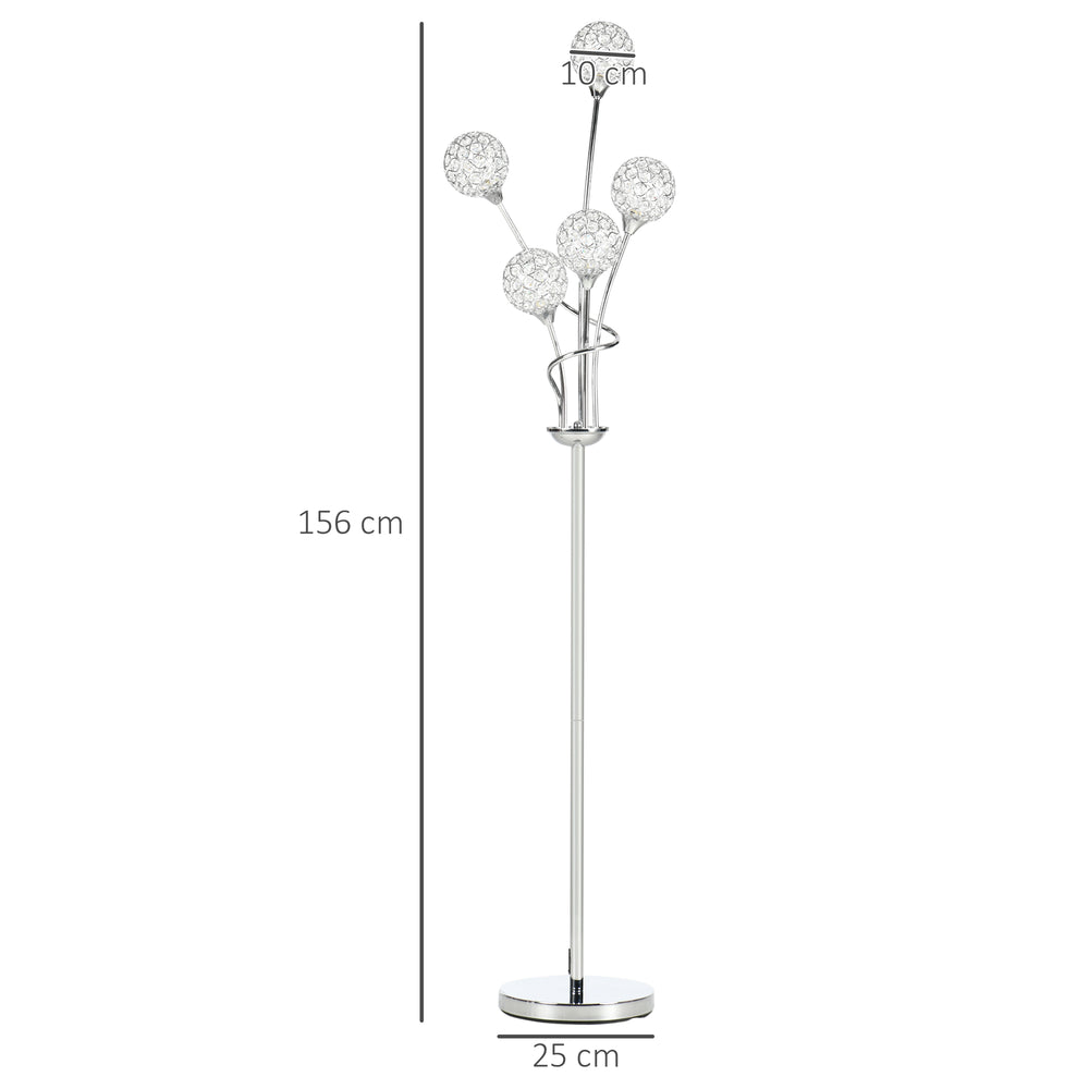HOMCOM Crystal Floor Lamps for Living Room Bedroom with 5 Light, Modern Upright Standing Lamp, 34x25x156cm, Silver
