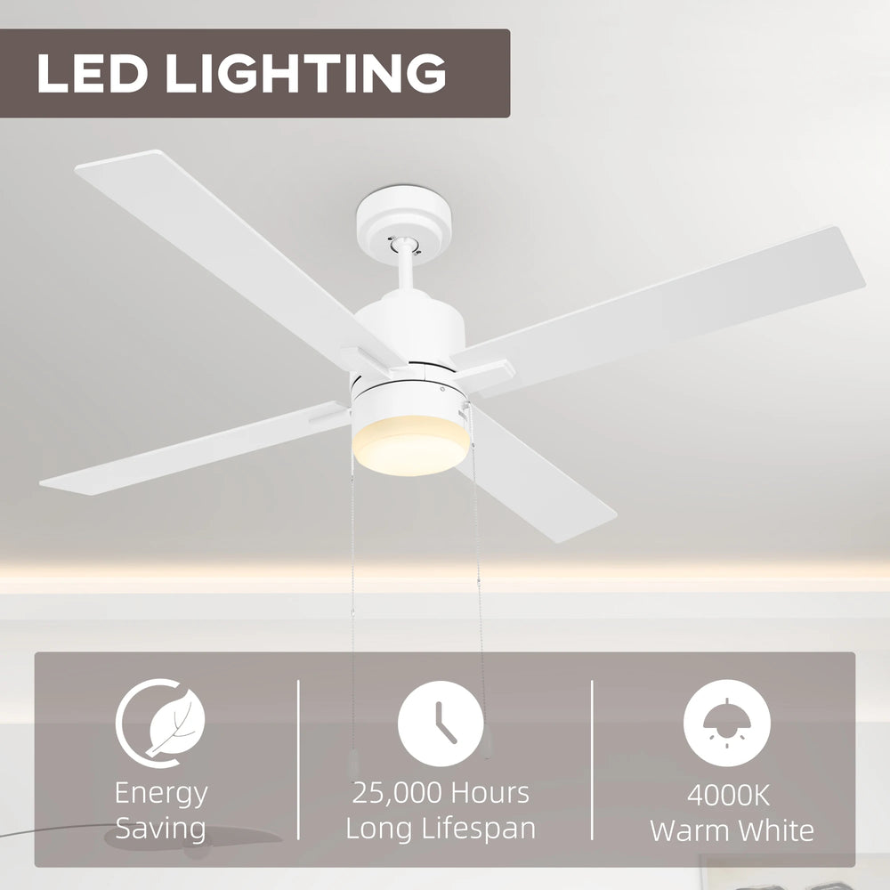 HOMCOM Ceiling Fan with LED Light, Flush Mount Ceiling Fan Lights with Reversible Blades, Pull-chain, White and Natural Tone