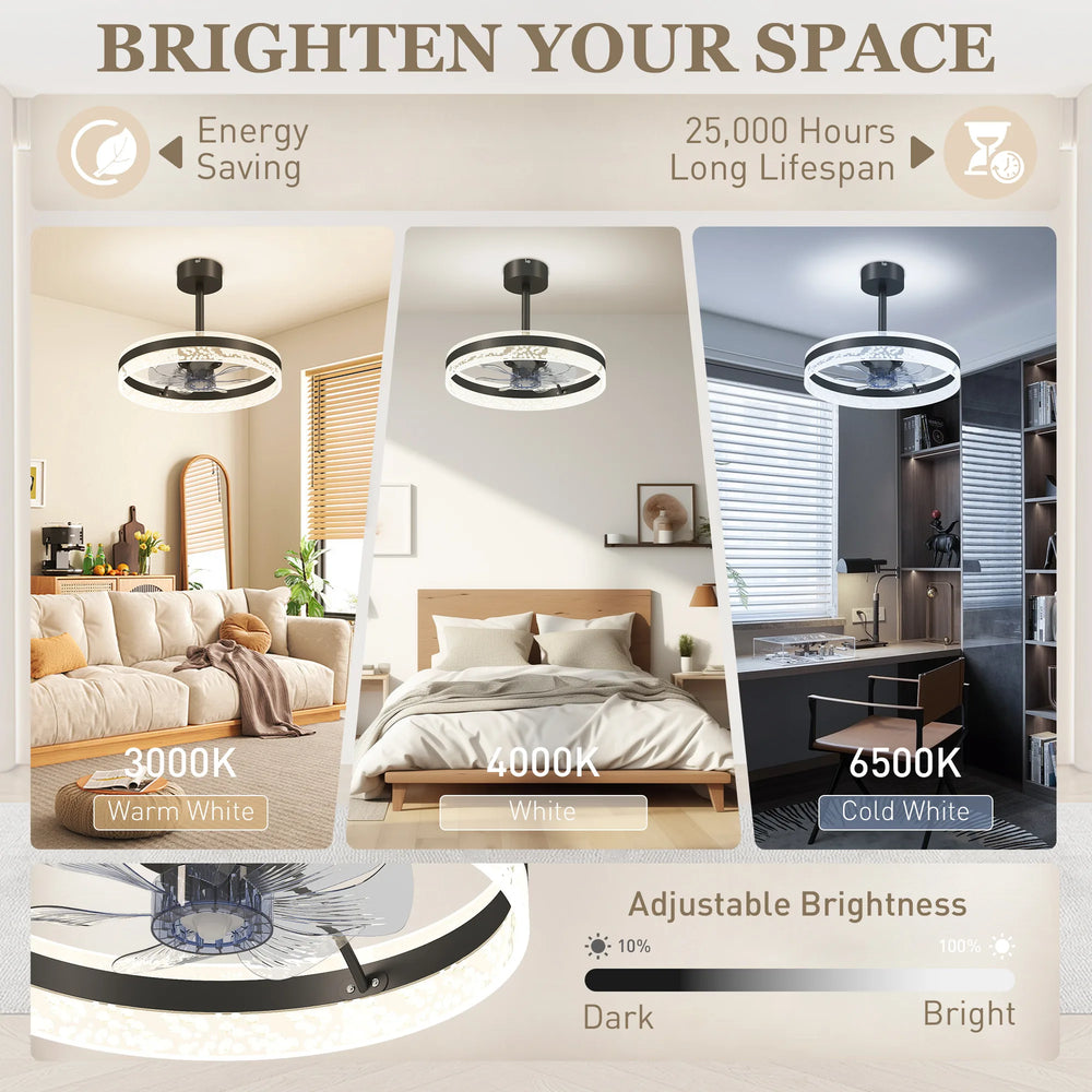 Brighten and cool your space with the HOMCOM modern ceiling fan with lamp! Choose from cold white, white, or warm white LED settings and adjust the brightness from 0-100% for the personal ambiance. Plus, the copper DC motor delivers a strong, quiet wind with six speeds and a handy breeze mode (cycles randomly to mimic natural wind). Control the bedroom ceiling fan effortlessly with the included remote.
