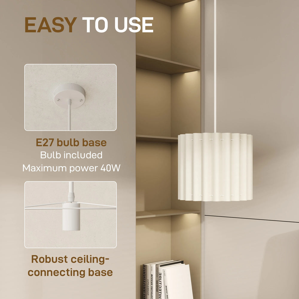 HOMCOM Linen Pendant Light, Bedside Ceiling Lamps with E27 Bulb, Modern Hanging Lights for Living Room, Bedroom, Kitchen, Hallway, White