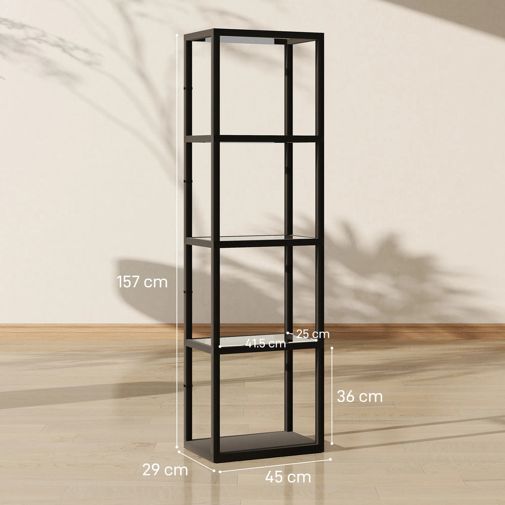 HOMCOM LED Floor Lamp with Glass Shelves, 4 Layers Dimmable Tall Standing Lamp, Modern Column Shelf Floor Light for Living Room, Bedroom, Office, Black