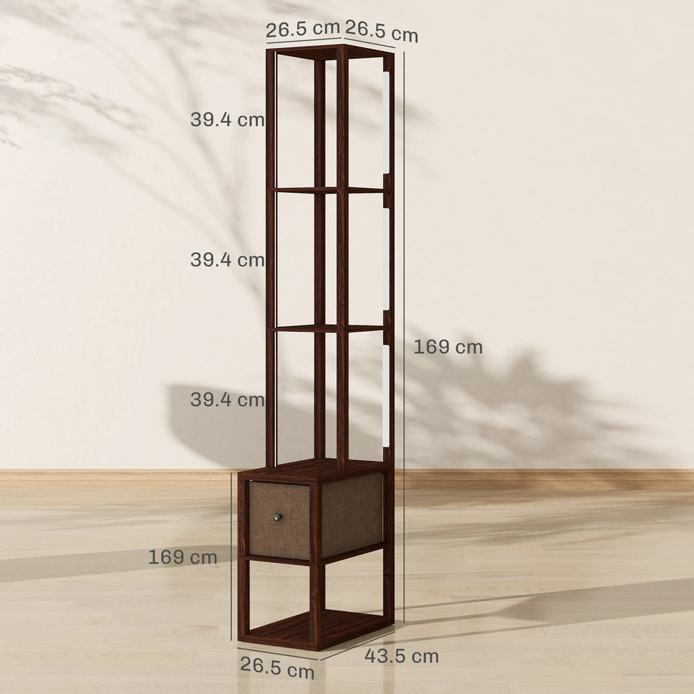 HOMCOM Floor Lamp with Shelves, LED Column Modern Standing Lamp with Fabric Drawer, Adjustable Brightness, Foot Switch for Living Room, Bedroom, Office, Dark Brown
