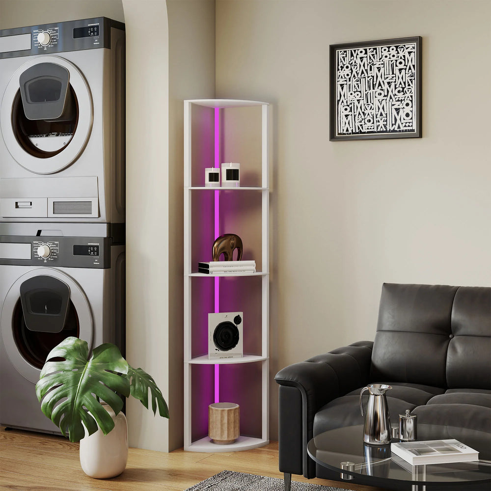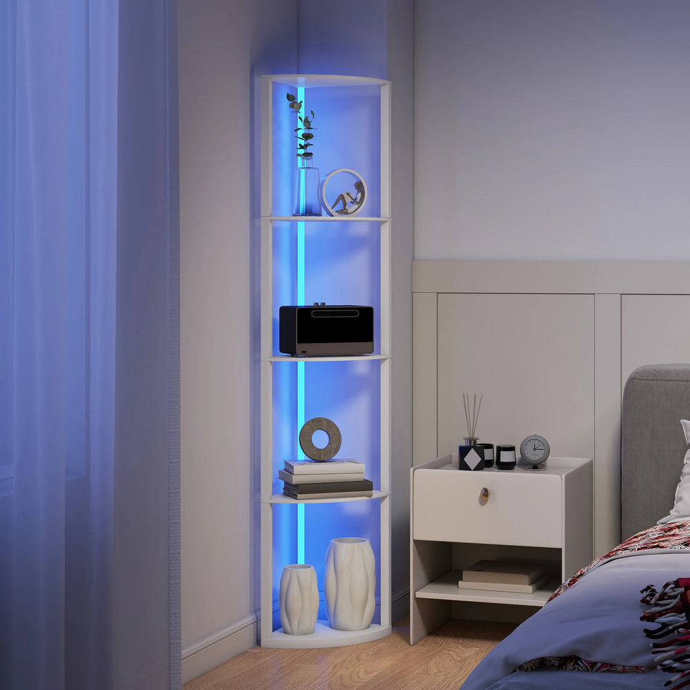 HOMCOM RGB LED Floor Lamp with Shelves, 5-Tier Dimmable Standing Lamp with Adjustable Brightness and Remote Control, Modern Corner Display Shelf Unit for Living Room Bedroom Office, White is backordered and will ship as soon as it is back in stock.